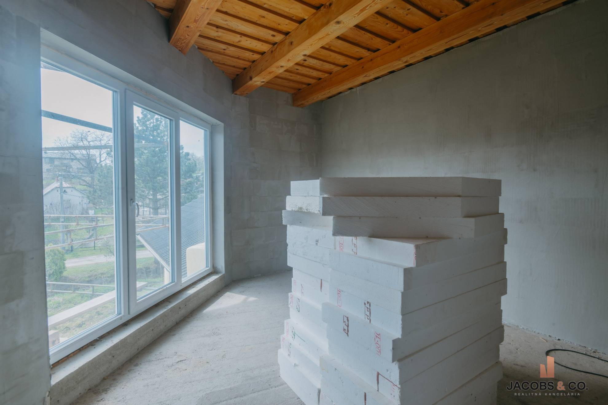 Na poschodí sú dve samostatné izby a kúpeľňa s predprípravou na vaňu a toaleta. Poschodie je potrebné dokončiť, čo poskytuje možnosť prispôsobiť si priestory podľa vlastných potrieb.